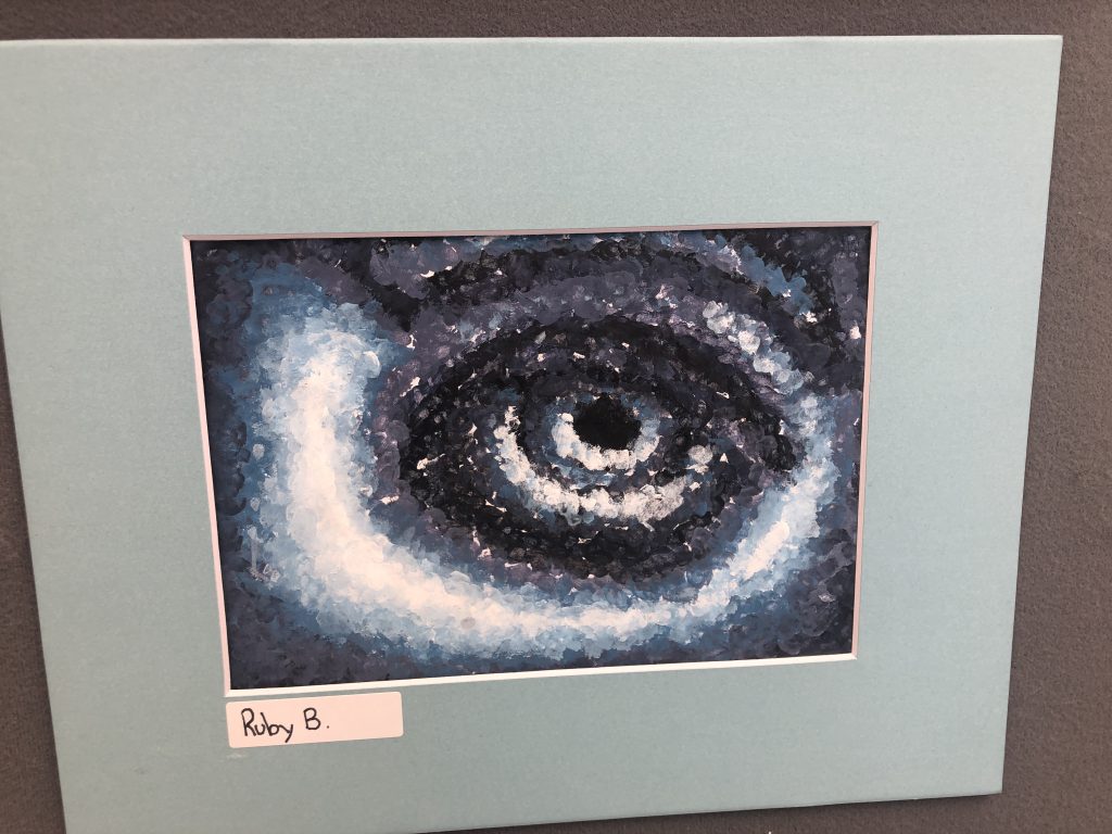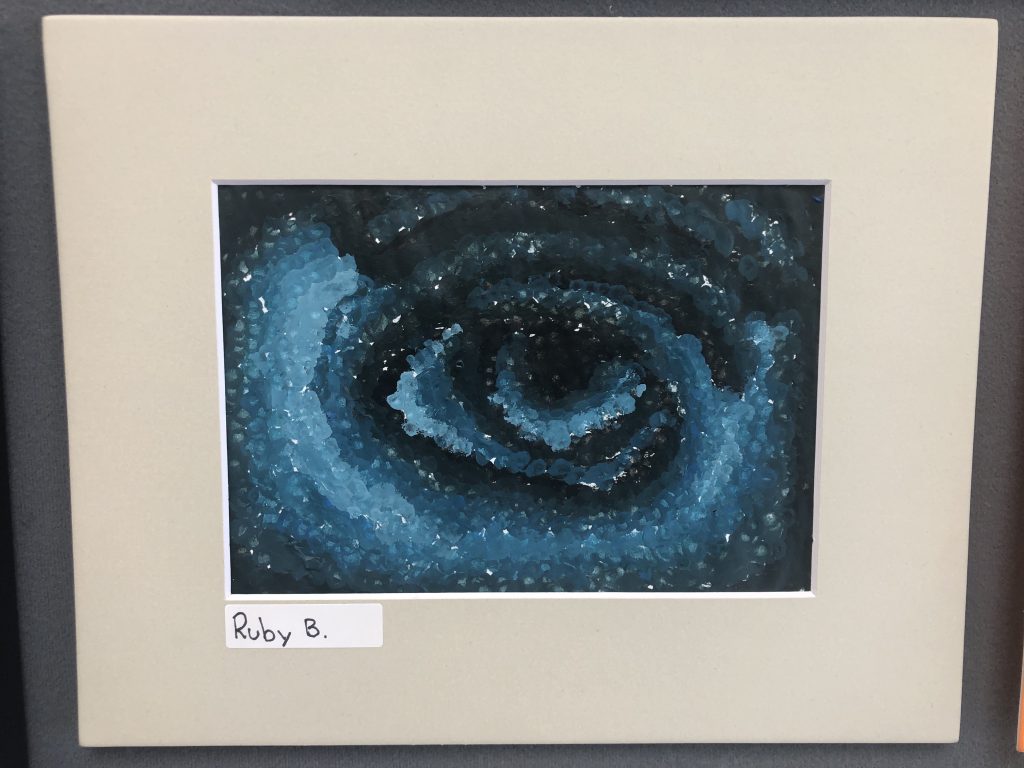 Here is some of Ruby’s art picked to display at her school. She is spending more time lately drawing and enjoyed her art class in school this year. Which one do you like better?