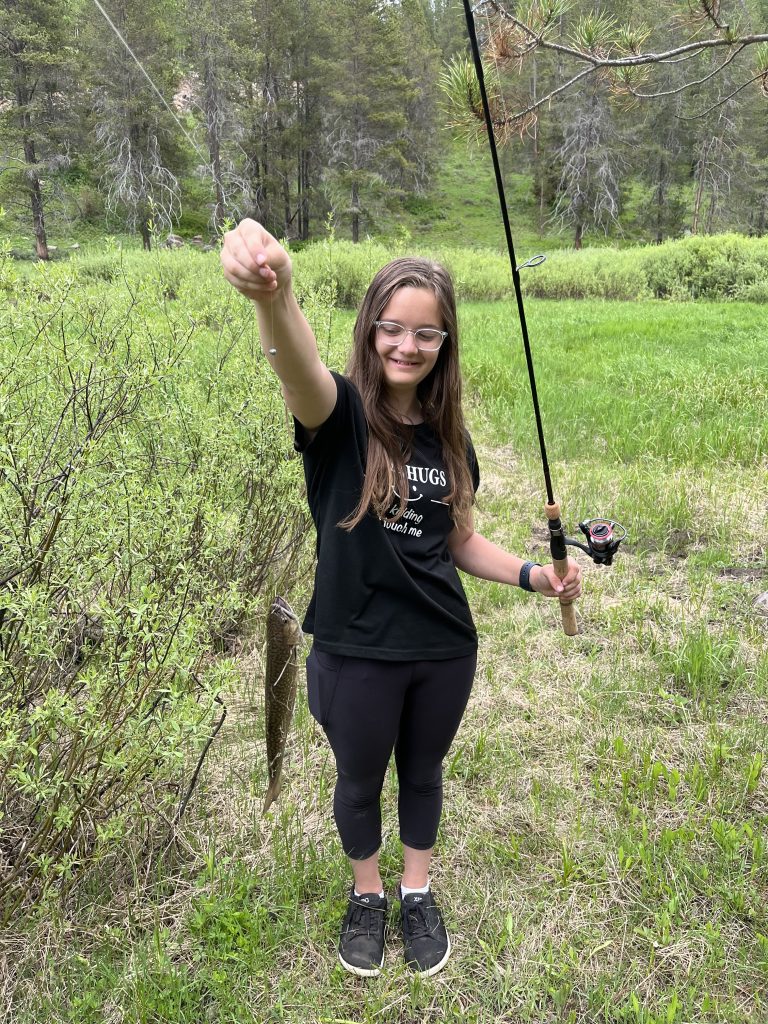 They really enjoyed being outdoors, other than the mosquito bites. Ruby had fun fishing